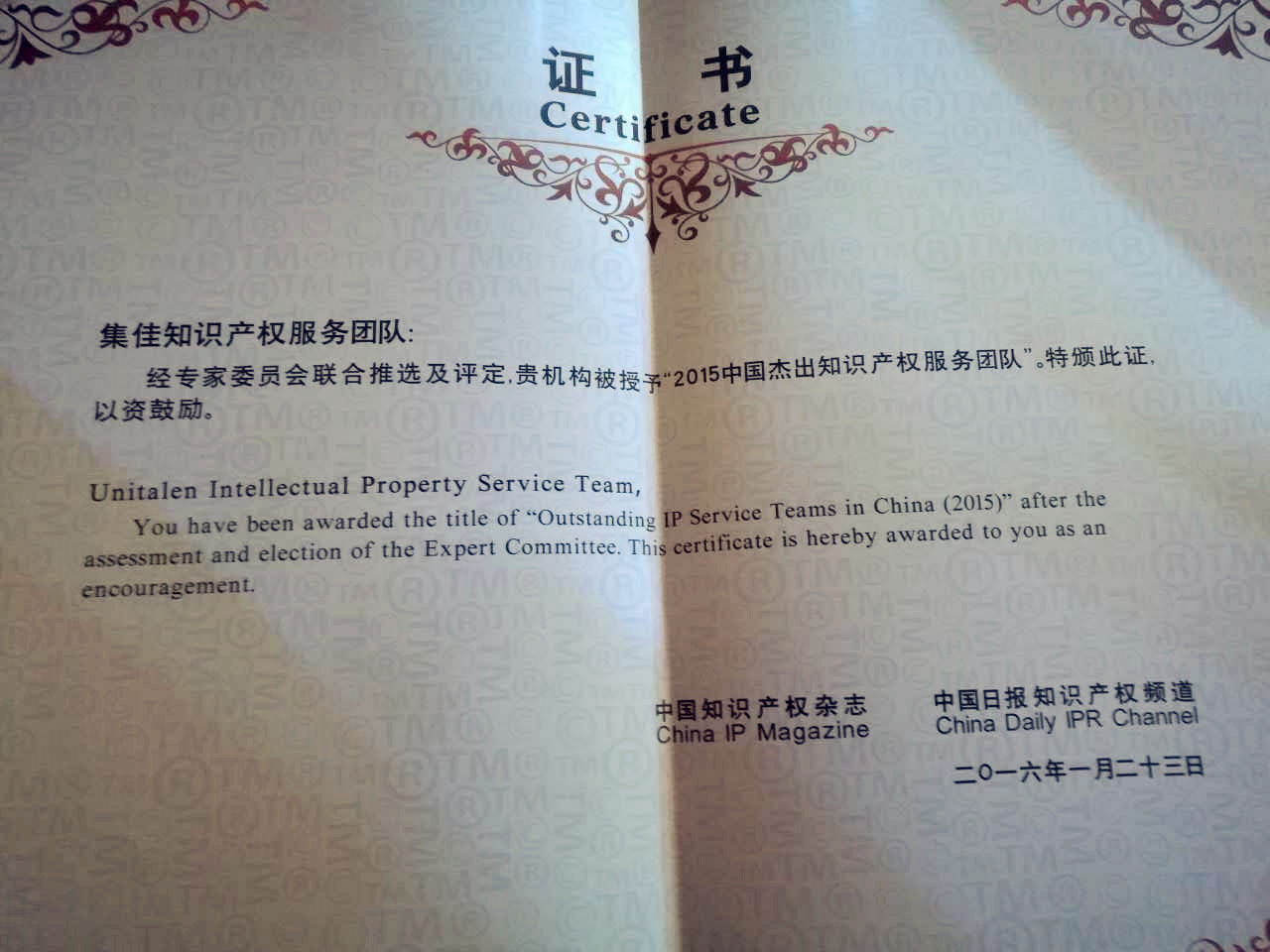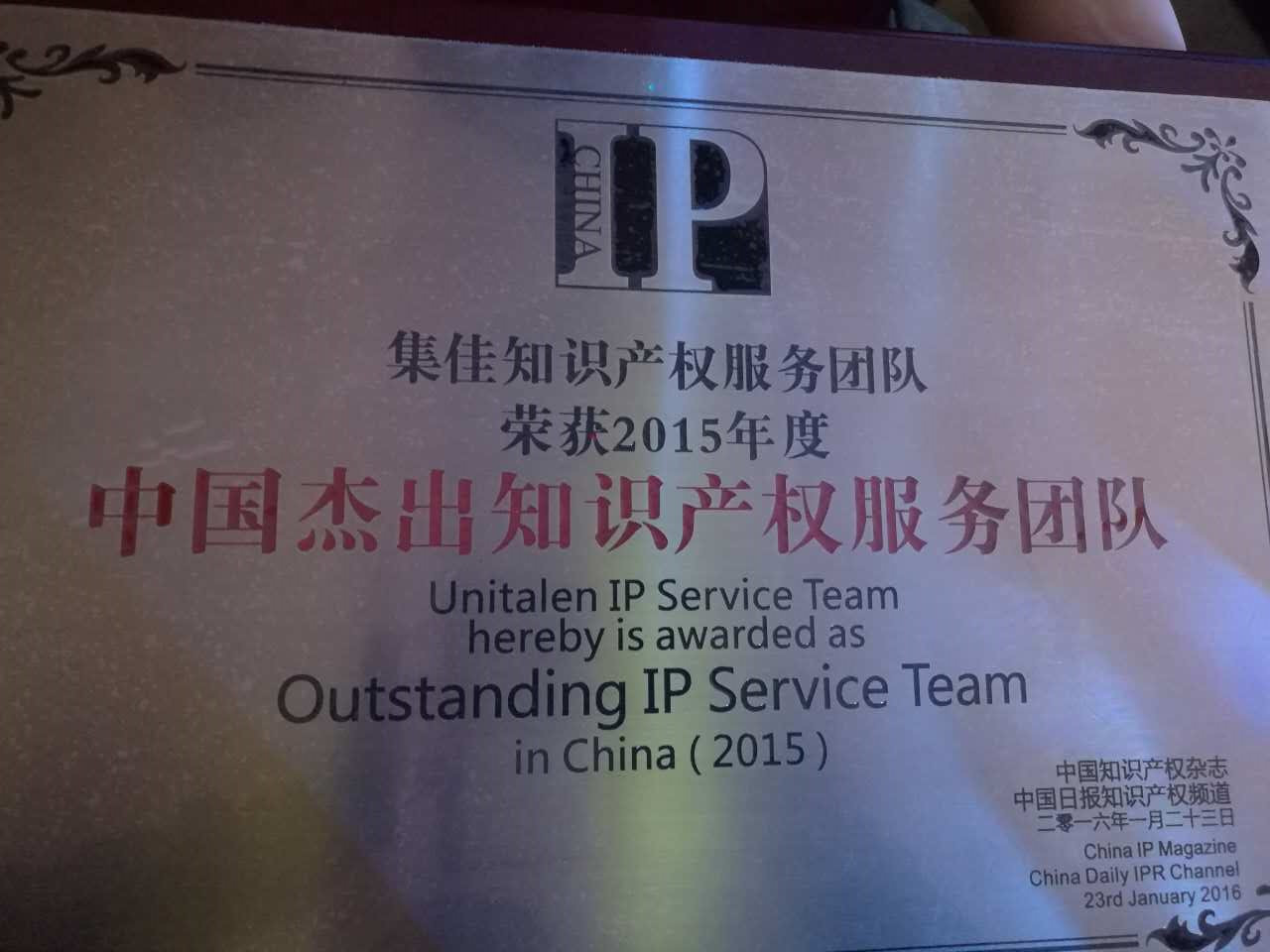集佳榮獲“2015中國杰出知識產(chǎn)權服務團隊”