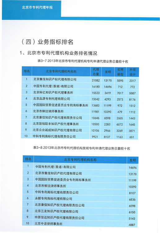 2013年北京市專利代理年報發布 集佳代理總量蟬聯第一
