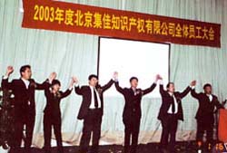 2003年,對(duì)于集佳來(lái)說(shuō),是向國(guó)際化企業(yè)邁進(jìn)的關(guān)鍵一年,集佳人上下同心、拼搏奮進(jìn),戰(zhàn)勝了“非典”對(duì)我們的巨大挑戰(zhàn)和代理機(jī)構(gòu)放開(kāi)的嚴(yán)峻考驗(yàn),再次成為商標(biāo)代理量的全國(guó)第一。集佳合伙人會(huì)議主席于澤輝在2003年度工作報(bào)告中,詳細(xì)闡述了集佳在過(guò)去的一年里取得的成績(jī)和進(jìn)步,按部門總結(jié)了2003年工作的優(yōu)勢(shì)和不足,并詳細(xì)分析了行業(yè)前景、國(guó)際環(huán)境和集佳的優(yōu)勢(shì)與發(fā)展?jié)摿Γ辜讶藢?duì)在5年內(nèi)把集佳發(fā)展成為世界前100名知識(shí)產(chǎn)權(quán)代理機(jī)構(gòu)的目標(biāo)充滿信心。