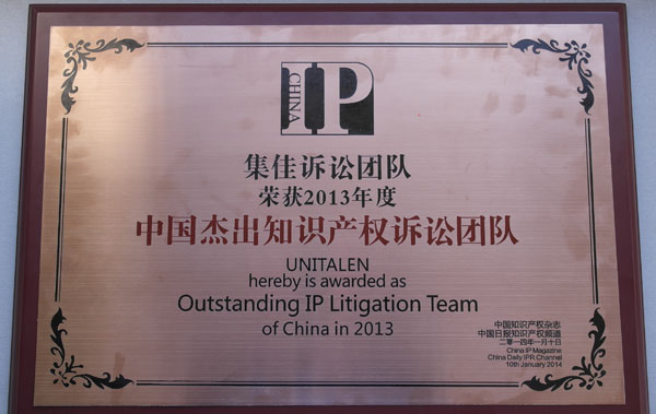 由《中國日報》與《中國知識產權》雜志社共同主辦的第四屆中國知識產權新年論壇于2014年1月10日-11日在北京民族飯店舉行。在本屆論壇上, 集佳律師事務所以其專業的訴訟水準、公認的業務和研究能力,被評選為“2013年度中國杰出知識產權團隊”。
