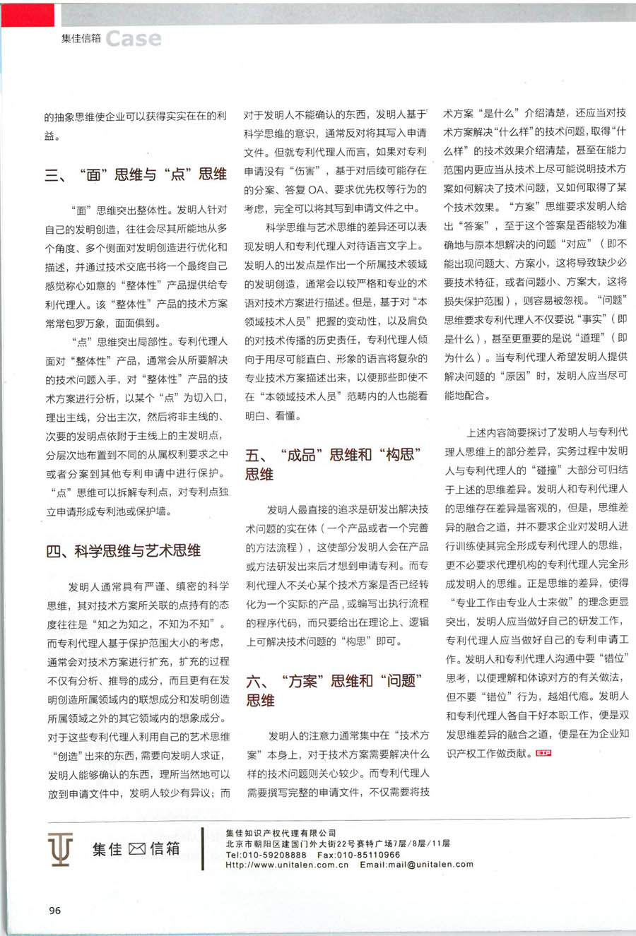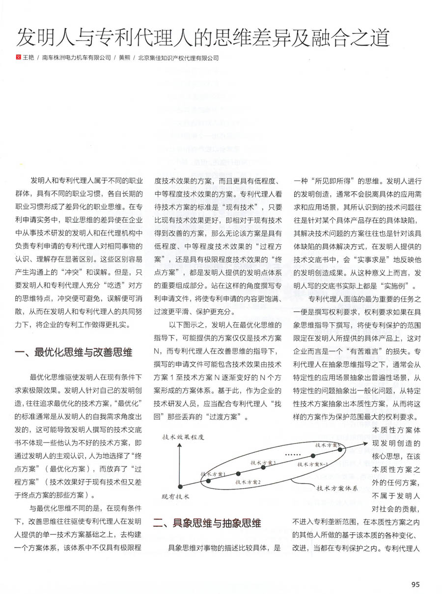 集佳代理人文章《發明人與專利代理人的思維差異及融合之道》被《電子知識產權》發表
