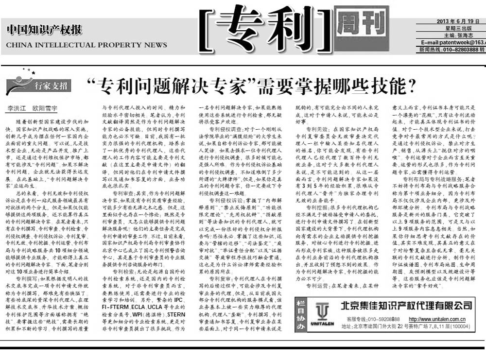 法律聲明 Unitalen Mail Box ?2016 Unitalen Attorneys at Law 版權(quán)所有 集佳知識(shí)產(chǎn)權(quán)代理有限公司 京ICP備11033076號(hào) 京公網(wǎng)安備11010502020670