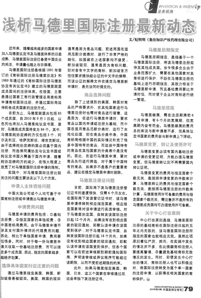 《中國發明與專利》:淺析馬德里國際注冊最新動態