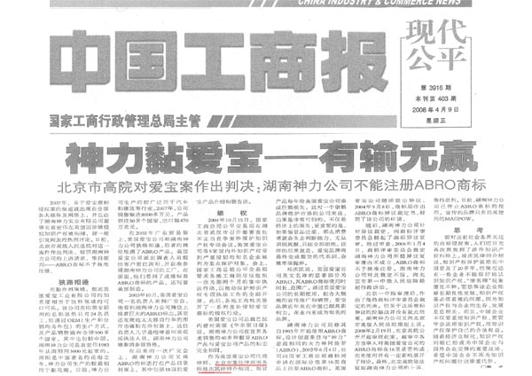 《中國工商報》:神力黏愛寶——有輸無贏