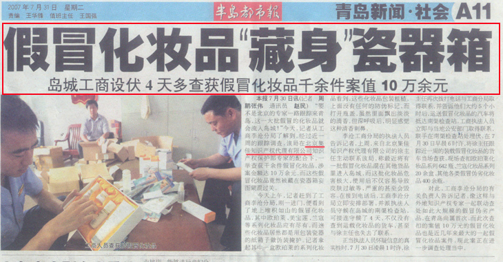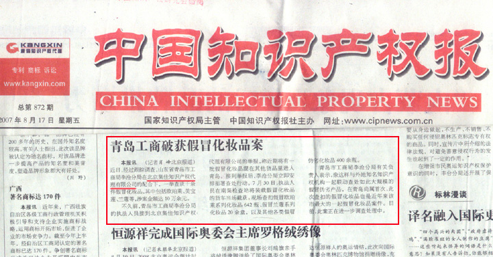 《半島都市報》、《中國知識產(chǎn)權(quán)報》:集佳聯(lián)合青島市李滄工商分局破獲大規(guī)模假冒化妝品案