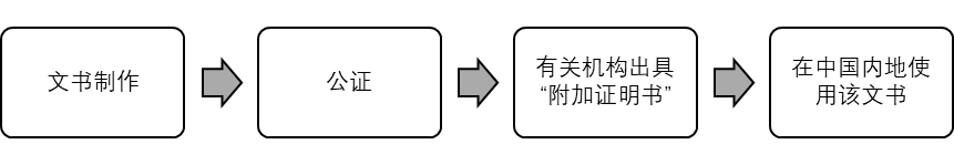《取消認(rèn)證公約》生效后,當(dāng)在中國內(nèi)地制作的文書需要在其他締約國使用時(shí),證明程序包括公證和出具附加證明書。
