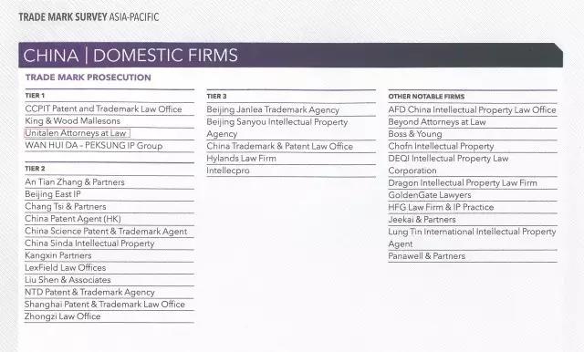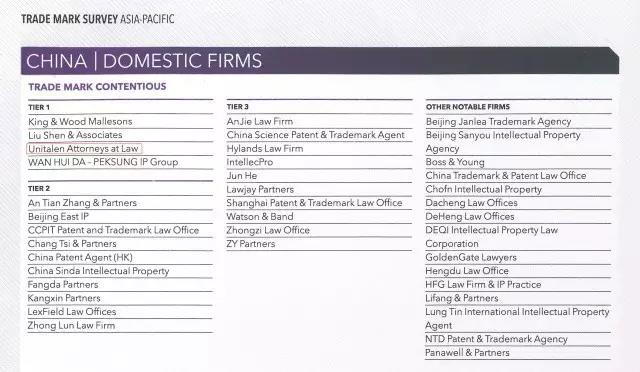 日前,全球權(quán)威知識產(chǎn)權(quán)雜志Managing Intellectual Property (MIP)公布“2017知識產(chǎn)權(quán)之星” 商標(biāo)業(yè)務(wù)排行榜,集佳在“商標(biāo)申請”和“商標(biāo)訴訟”領(lǐng)域穩(wěn)居中國區(qū)第一梯隊(duì)(Tier 1)。