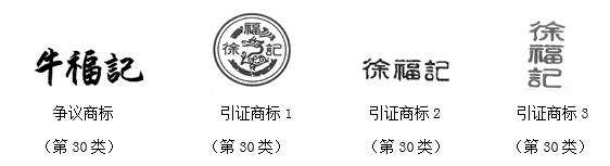 商評委經(jīng)審理認(rèn)為:爭議商標(biāo)由文字“牛福記”構(gòu)成,與引證商標(biāo)中顯著識別部分的文字“徐福記”僅一字之差,在文字設(shè)計風(fēng)格和視覺效果等方面相近,爭議商標(biāo)與引證商標(biāo)已構(gòu)成近似商標(biāo)。爭議商標(biāo)指定的糖、餅干等商品與引證商標(biāo)核定使用的糖果、糕點等商品在功能、用途、銷售渠道等方面存在相同或相近之處。申請人提交在案證據(jù)顯示“徐福記及圖”商標(biāo)經(jīng)使用在第30類糖果、糕點等商品上具有較高的知名度,被申請人在應(yīng)當(dāng)知曉申請人商標(biāo)知名度的情況下仍然注冊爭議商標(biāo)的行為難謂正當(dāng)。因此,爭議商標(biāo)與引證商標(biāo)構(gòu)成使用在相同或類似商品上的近似商標(biāo)。爭議商標(biāo)予以無效宣告。
