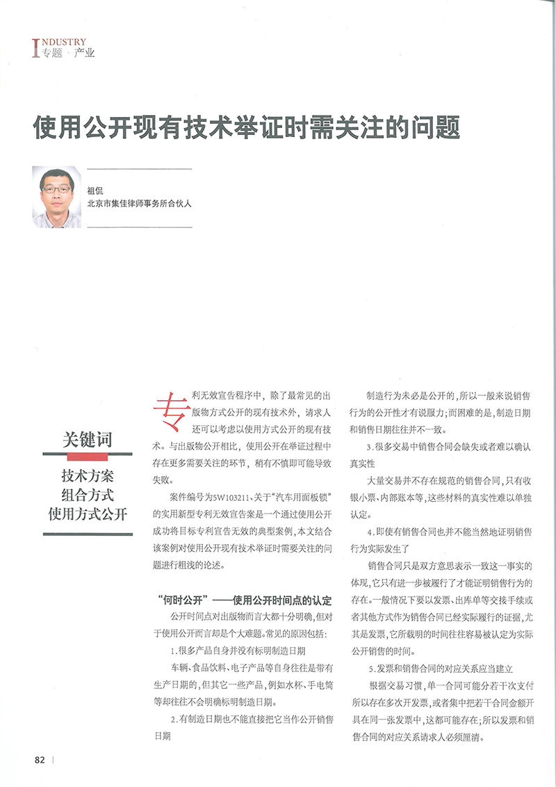 集佳文章《使用公開(kāi)現(xiàn)有技術(shù)舉證時(shí)需關(guān)注的問(wèn)題》在《中國(guó)知識(shí)產(chǎn)權(quán)》發(fā)表