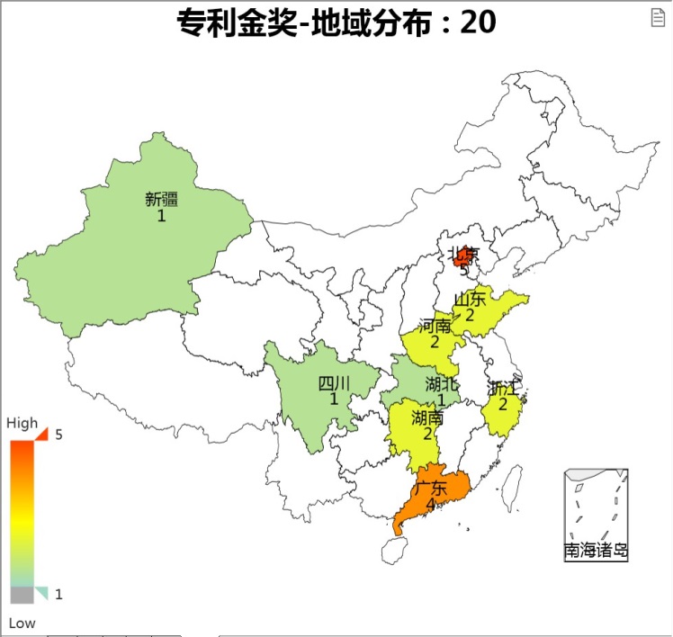 其中,廣東省遙遙領先,廣東一省占比超過了獲獎專利總量的1/5。