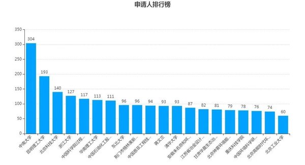 如上分析,在我國固廢領(lǐng)域,國內(nèi)申請人占據(jù)絕對主導地位(96%以上)。從圖3具體來看,除了中南大學(304件)和昆明理工大學(193件)領(lǐng)先較多外,申請量在申請人維度并沒有明顯的集中。注意到前六位申請人均為院校,這表明在整個固廢領(lǐng)域的技術(shù)研發(fā)上,高等院校占據(jù)著非常重要的地位。綜合來看,固廢領(lǐng)域的技術(shù)創(chuàng)新尚沒有出現(xiàn)絕對的巨頭。