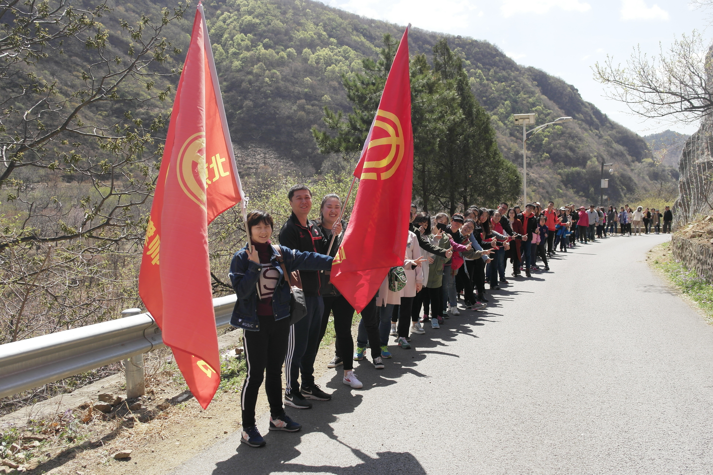 今年的公益植樹依舊選址懷柔區慕田峪長城西,聽說去年種的小樹此時花開正盛,大家上山的腳步也更加輕盈,呼吸著郊外的新鮮空氣,一行人心情也和陽光一樣明媚。