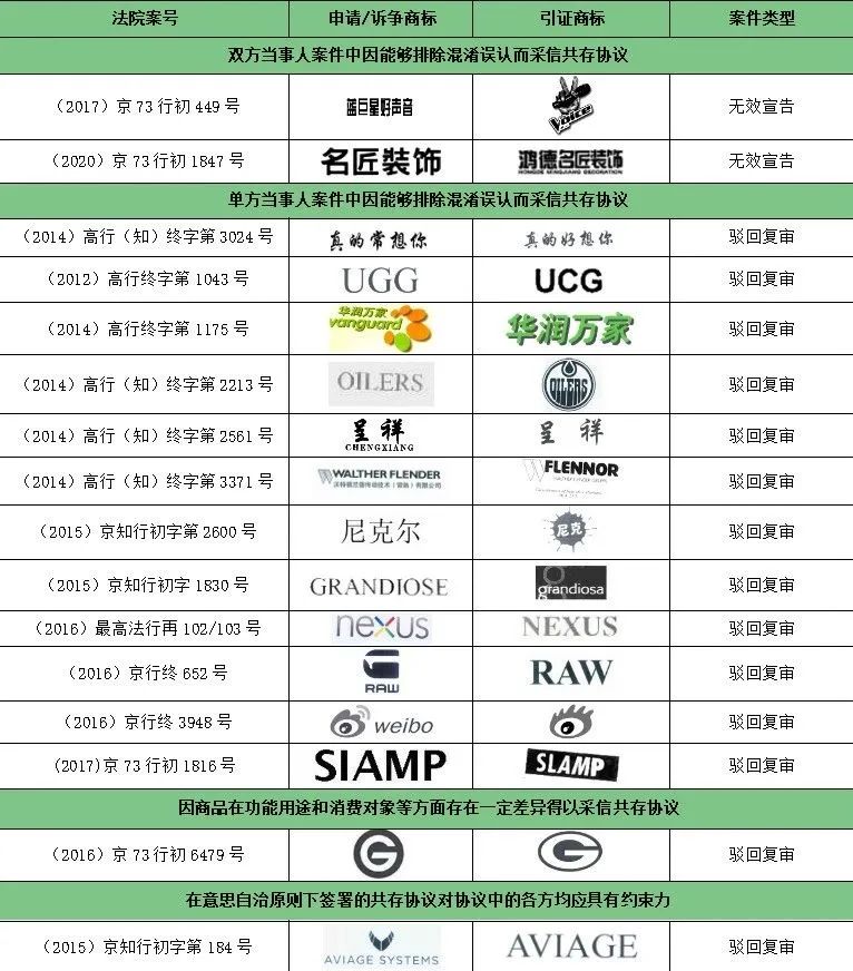 ”圖形商標(biāo)復(fù)審案件中均是因涉及公共利益保護(hù)的問(wèn)題而未采信共存協(xié)議。