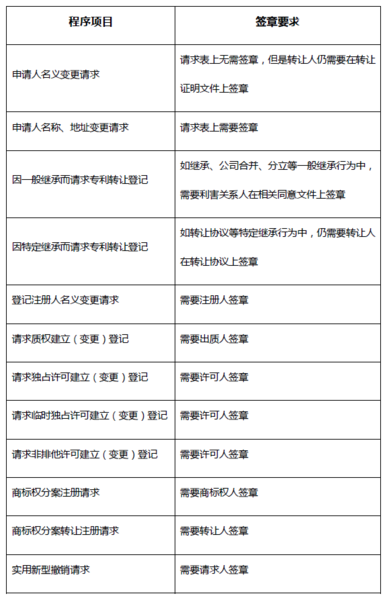 目前,日本專利涉及的行政程序中僅下列程序仍保留簽章要求,其他程序都不再需要提供簽章。對(duì)于日本境外的申請(qǐng)人來說,可以用簽字替代簽章,簽字和簽章的規(guī)定相同。