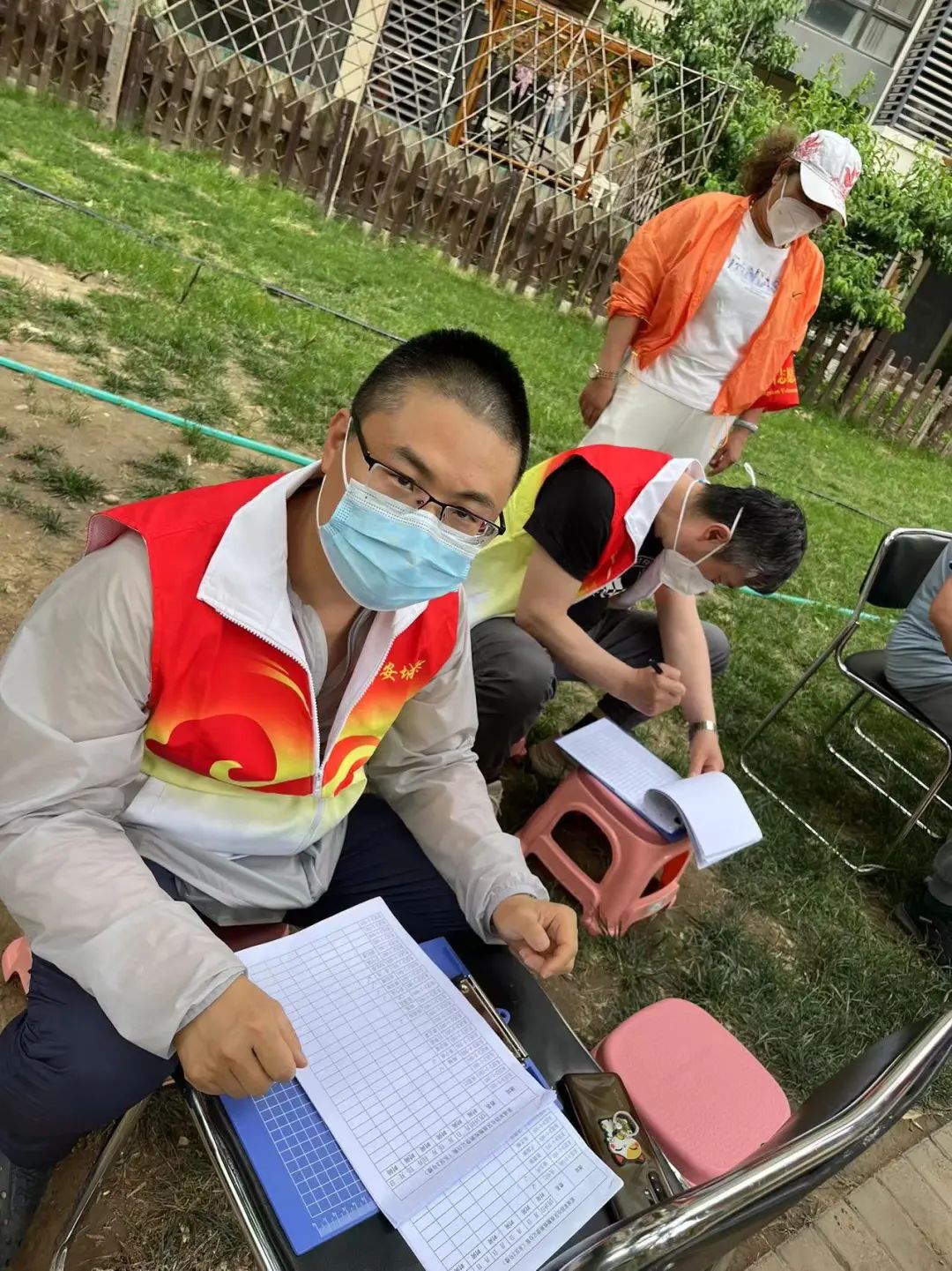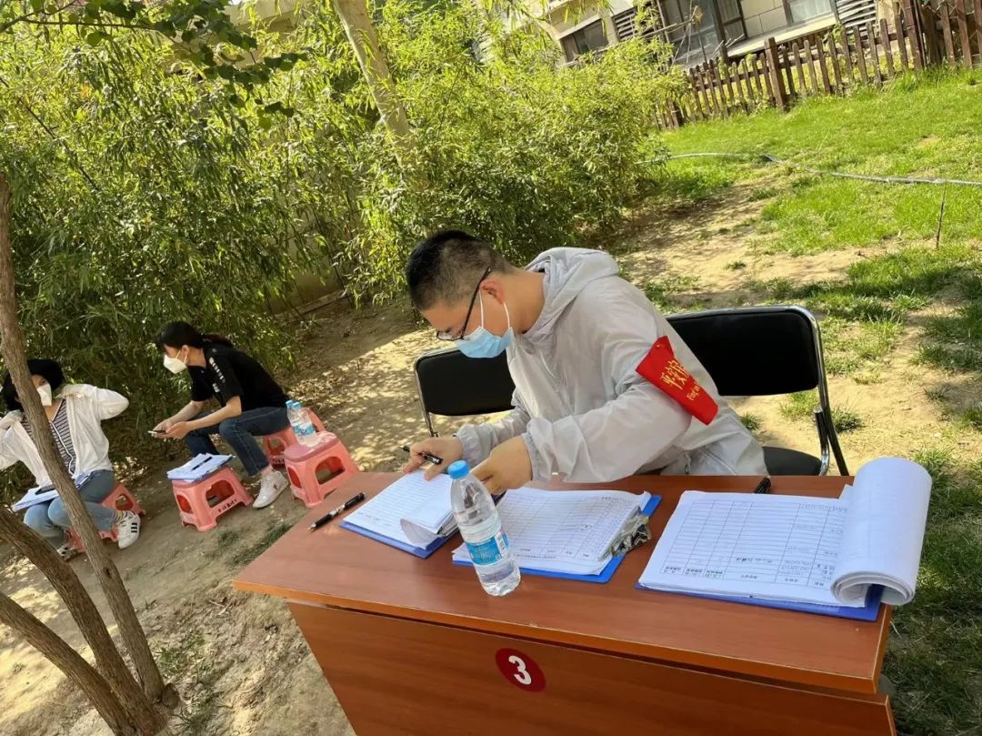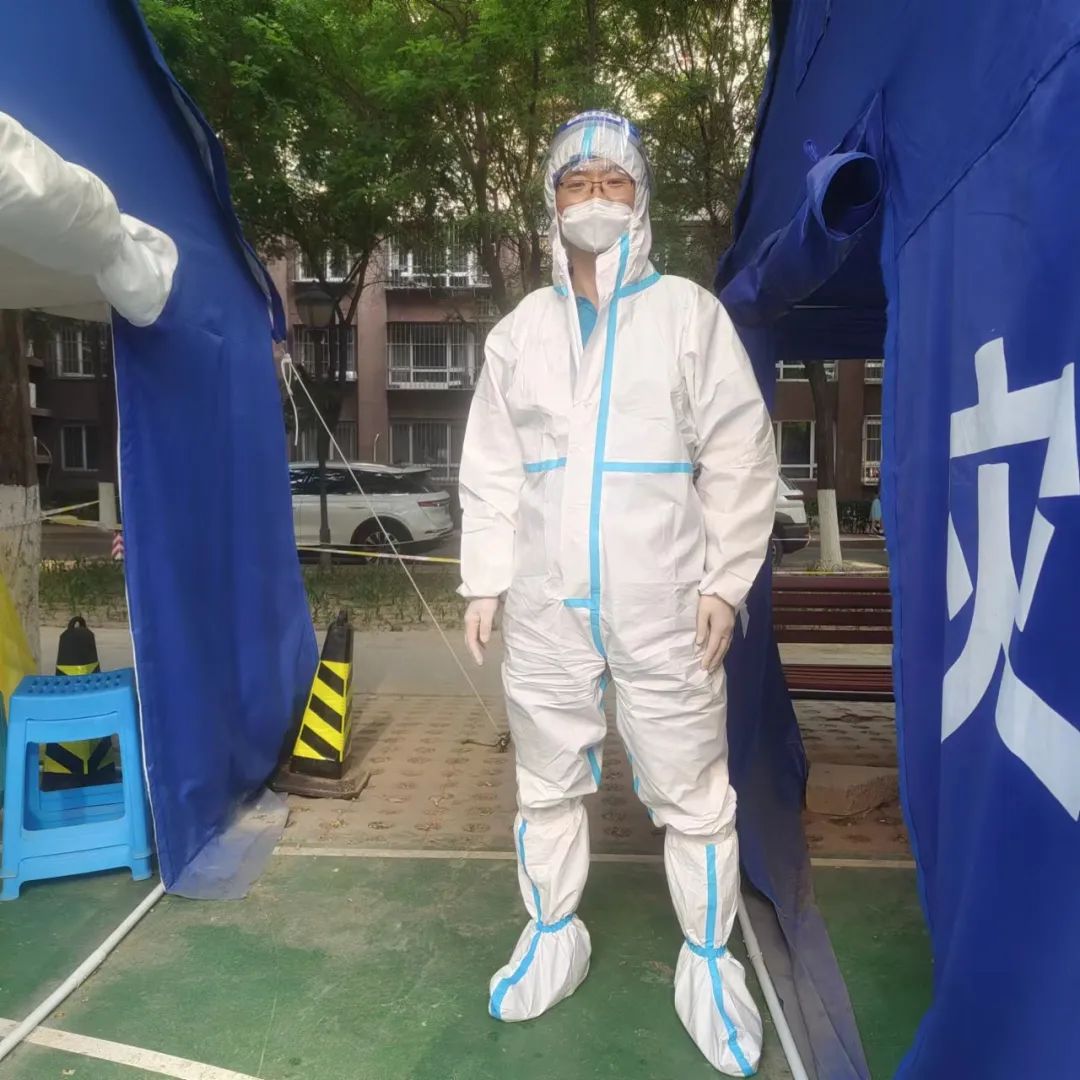 訴訟部的張亮化身 “大白”,為居民登記核酸檢測信息、維持現場秩序、檢查健康碼。