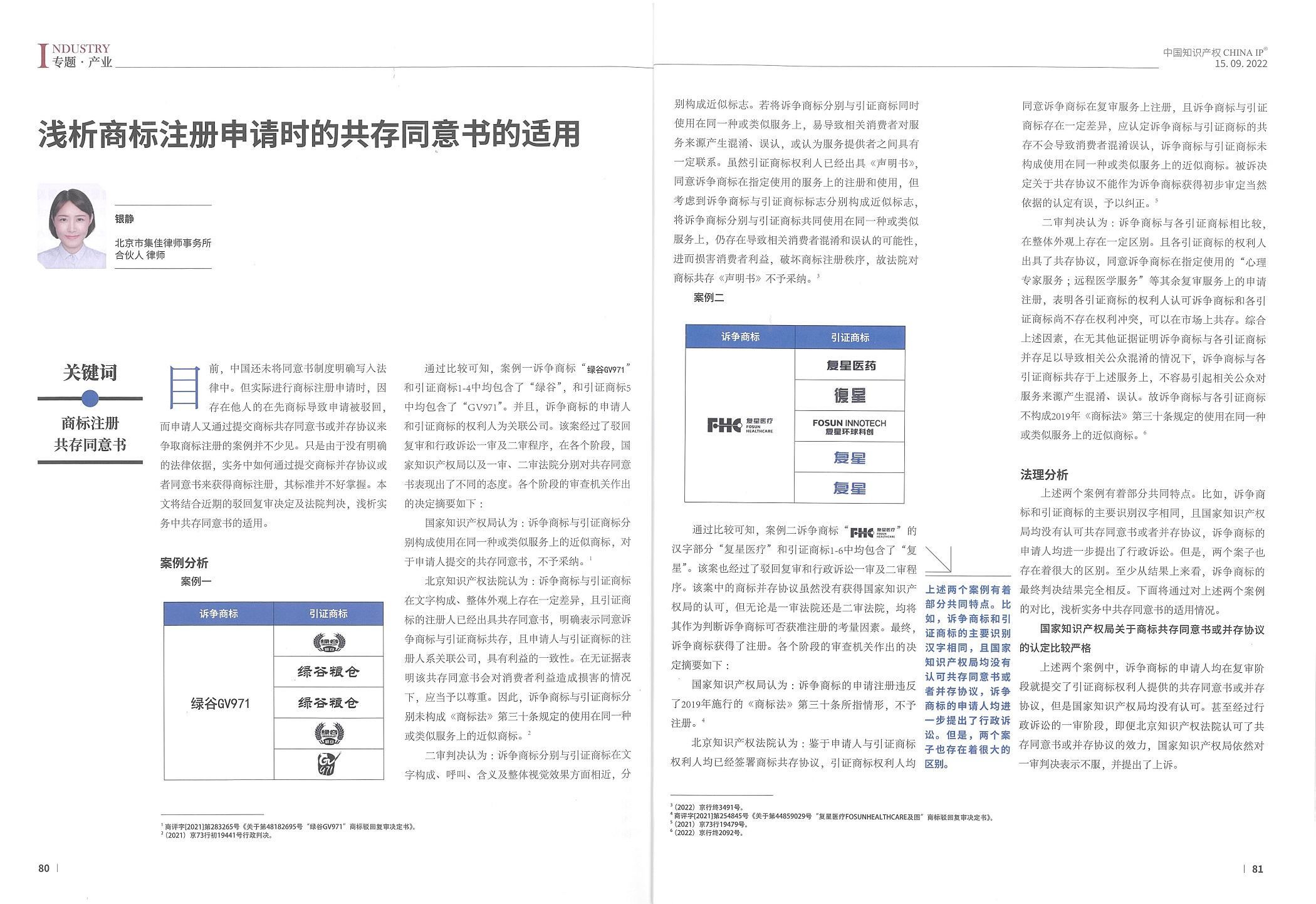 集佳文章《淺析商標注冊申請時的共存同意書的適用》在《中國知識產權》發表