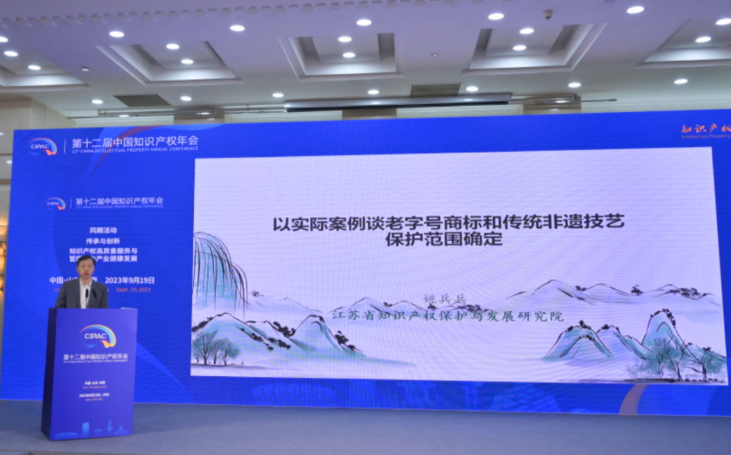 江蘇省知識產(chǎn)權(quán)保護(hù)與發(fā)展研究院姚兵兵院長發(fā)表了題為《以實(shí)際案例談老字號商標(biāo)和傳統(tǒng)非遺技藝保護(hù)范圍確定》的主題演講,通過對“蔣有記”案、“福壽三多絨花”案的解讀,梳理了老字號和非物質(zhì)文化遺產(chǎn)保護(hù)范圍的司法動(dòng)向。
