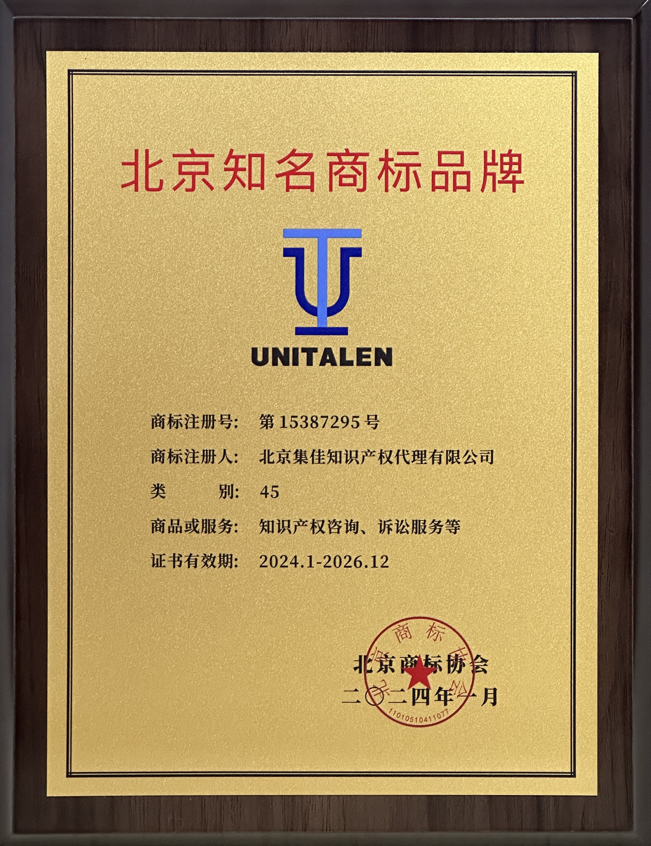 集佳“UNITALEN”商標榮獲2023年度“北京知名商標品牌”認定