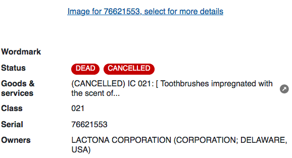 申請書中將這些產品列為“浸透草莓香味的牙刷”,該商標于2007年正式獲得注冊。