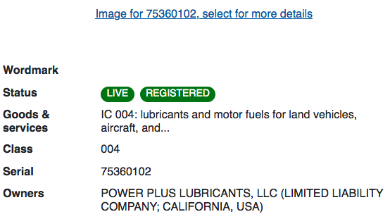 曼哈頓石油公司以“燃油香精”為特色營銷其潤滑劑,聲稱這些潤滑劑會使汽車尾氣散發出芳香。在將近20種潤滑劑中,有三種氣味被注冊為商標,分別是“超級草莓”、“櫻桃炸彈”和“美妙葡萄”。這些申請于1995年首次提交,是至今仍在使用的最古老的氣味商標。