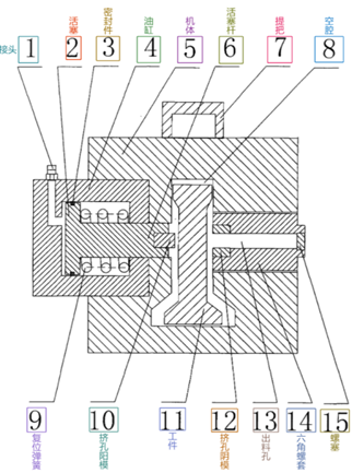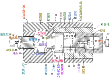 以證據1為最接近的現有技術,權利要求1相對于證據1的區別特征為:(1)權利要求1包括油泵、油管,證據1未公開油泵、油管;(2)權利要求1采用擠頭陽模和擠頭陰膜配合形成開孔。實際解決的技術問題為:機體形成一個環狀封閉結構,以克服下端開放結構帶來的機體易損的技術問題。由于證據2是涉案專利的背景技術,用于鋼軌工件的沖孔,與證據1用于汽車制造中的管件加工的加工工件不同,加工目的和原理也不相同,無改進動機以解決相應的技術問題,因此其兩者之間沒有結合的技術啟示,涉案專利具備創造性。