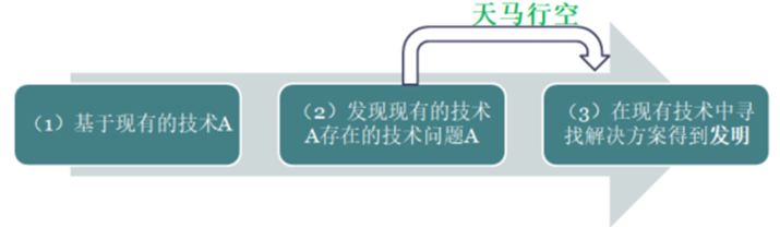 發明創造的實際產生過程通常可以模型化為:基于現有的技術A,發現技術A中存在的技術問題A’,技術人員隨機在現有技術中尋找可以解決該技術問題的現有技術手段,經過實驗和驗證,最終得到可以解決該技術問題A’的技術方案,即發明創造本身。這個過程中,技術人員的思維是“天馬行空”式不受限制的。