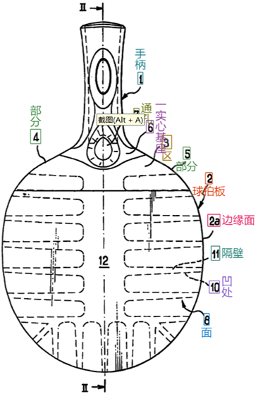 無效請求人廣州雙魚體育用品集團有限公司(簡稱雙魚公司)針對權利要求1主要提交了兩份證據,附件1為CN1827194A的中國發明專利申請公開說明書,其公開了一種乒乓球拍,其相對于涉案專利權利要求1的區別技術特征為:(1)手柄和底板采用注塑成型,彈性面板與底板通過注塑的方法固定連接在一起;(2)手柄和底板材料中的纖維為玻璃纖維,所述制成底板的塑料材料是PP、ABS或聚丙烯,所述彈性面板由天然橡膠、人工橡膠、硅膠或塑料膠粒制成,所述塑料膠料為PPE、PU、TPU、EPDM或POE;(3)手柄的表面注塑有天然橡膠、人工橡膠、硅膠或塑料膠粒制成的防滑層。附件2為CN101003169A的中國發明專利申請公布說明書,其公開了一種帶有加強芯和防滑條的長桿狀工具手柄的兩次成型方法,并具體公開了:長桿狀工具手柄包括加強芯3,材料為玻璃鋼或天然材料或金屬材料或塑料,用注塑或模壓方式在加強芯3表面上復合一層防滑條7,其中防滑條7剛好位于工作時手握處,防滑條7的材料選用普通橡膠或硫化橡膠或熱塑彈性材料或改性彈性材料。
