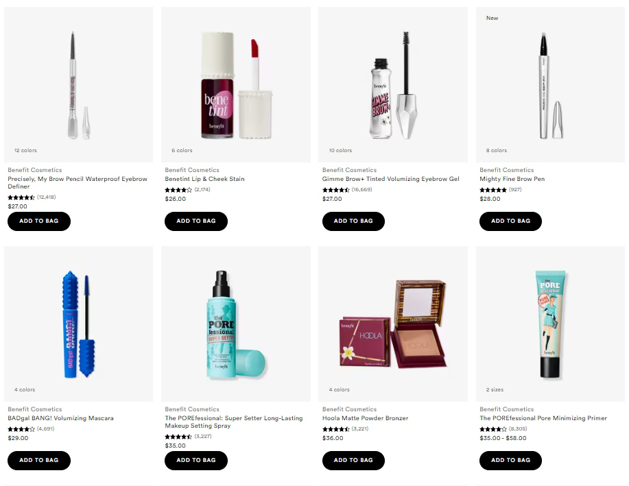 (貝玲妃在Ulta平臺上的暢銷產(chǎn)品及其定價。截自Ulta平臺)