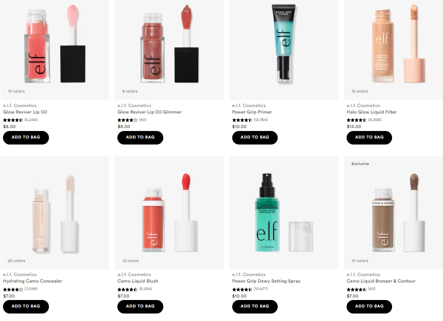 (E.l.f.在Ulta平臺的暢銷產(chǎn)品及其定價。截自Ulta平臺)
