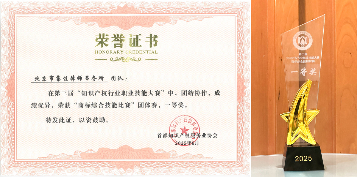近日,由北京市知識產(chǎn)權局、海淀區(qū)市場監(jiān)督管理局指導,首都知識產(chǎn)權服務業(yè)協(xié)會主辦的第三屆“知識產(chǎn)權行業(yè)職業(yè)技能大賽”圓滿落幕。集佳代表隊在比賽中展現(xiàn)了深厚的專業(yè)素養(yǎng),斬獲多項殊榮:由王斯沄、郝博文、王嬌嬌組成的商標團隊在商標綜合技能比賽中力戰(zhàn)群雄,榮獲一等獎;青年代理人徐欣在行業(yè)英語演講比賽中表現(xiàn)優(yōu)異,榮獲二等獎!