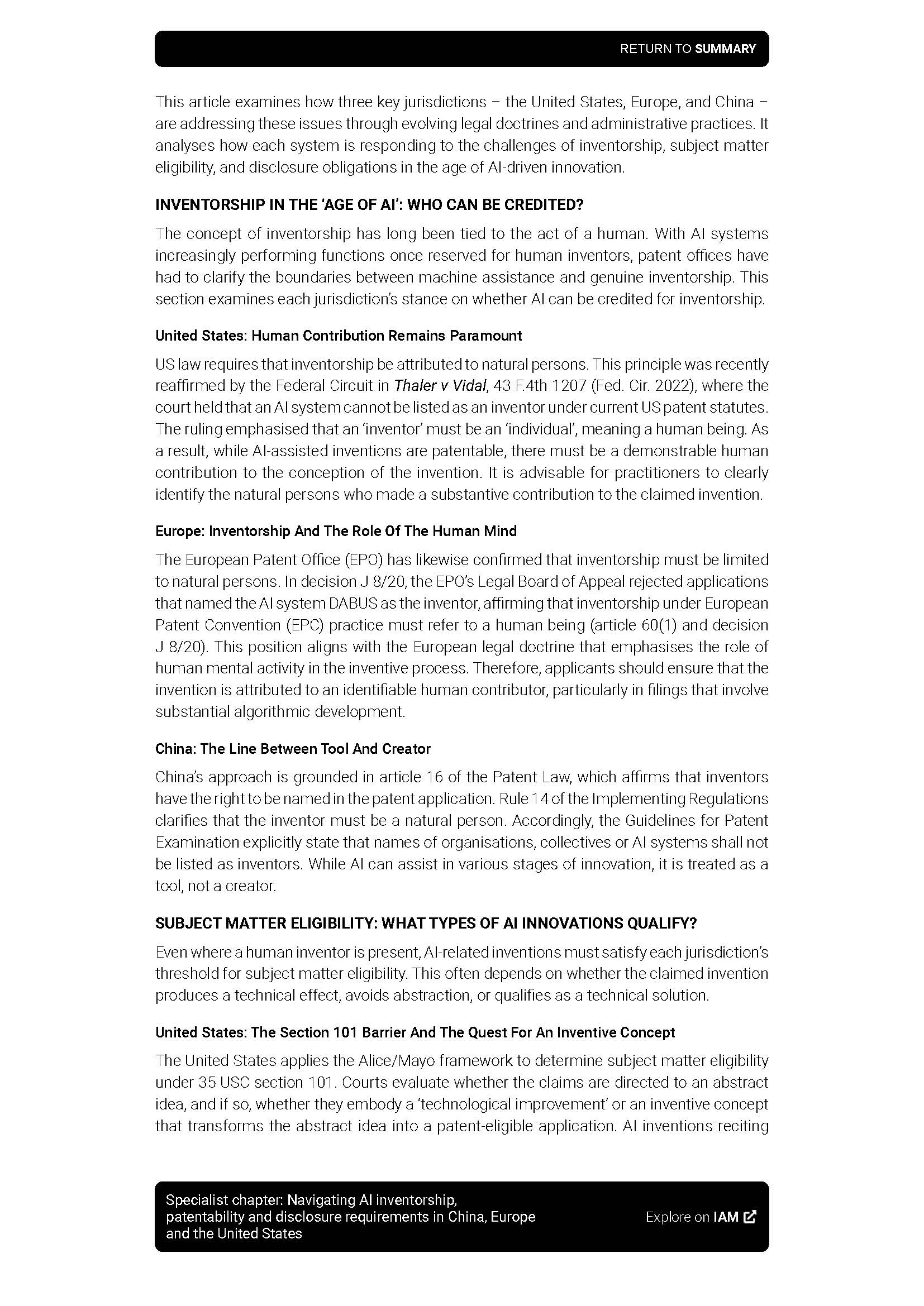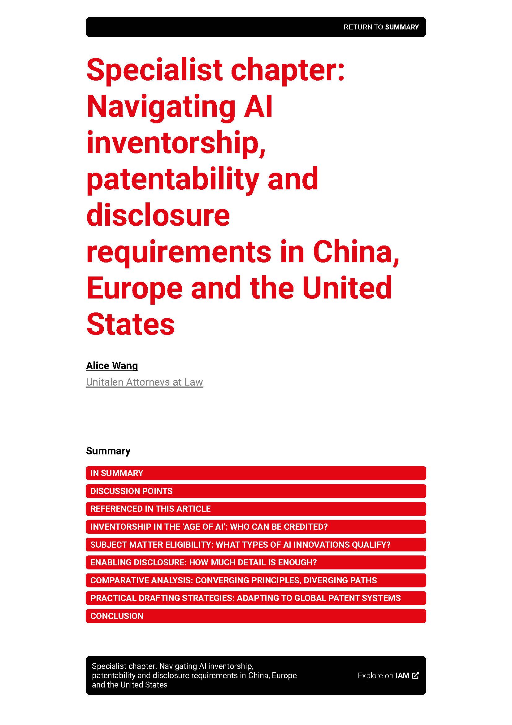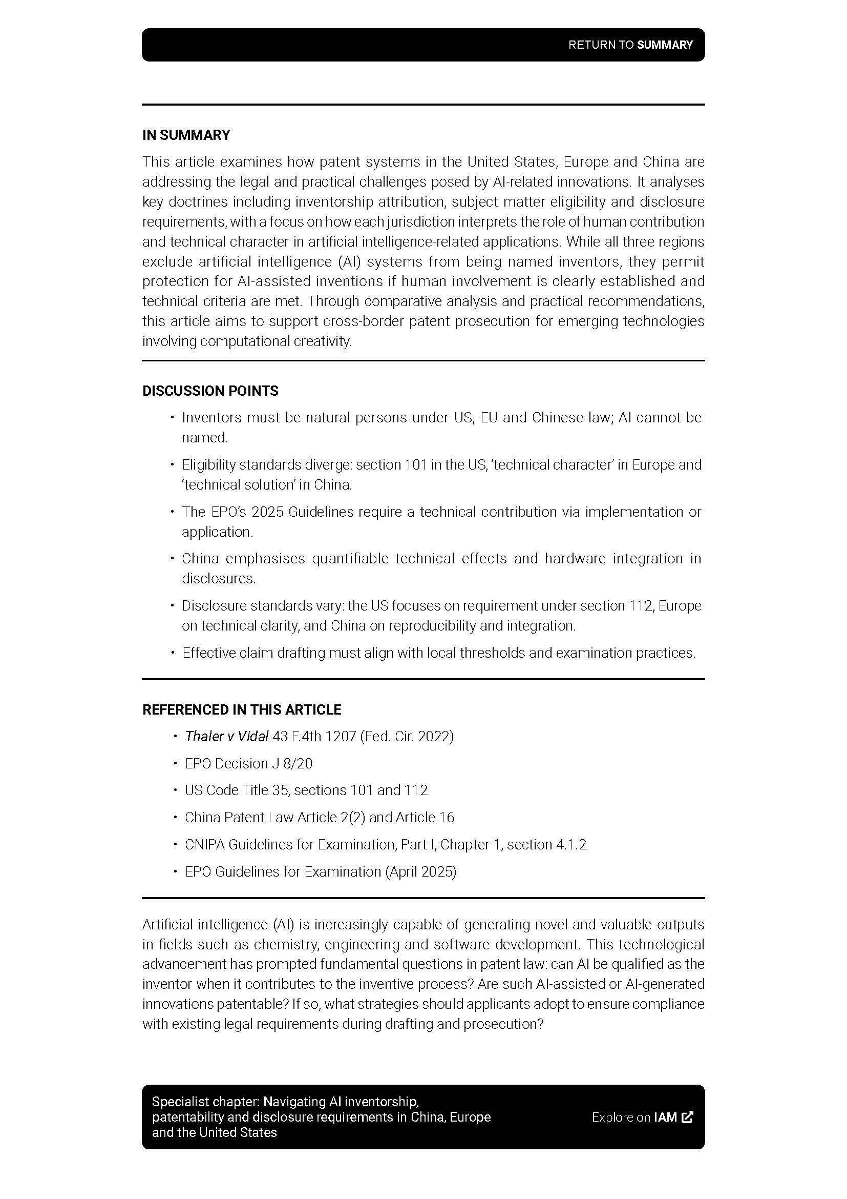 集佳文章《Specialist chapter:Navigating AI inventorship, patentability and disclosure requirements in China, Europe and the United States》在《IAM》發表