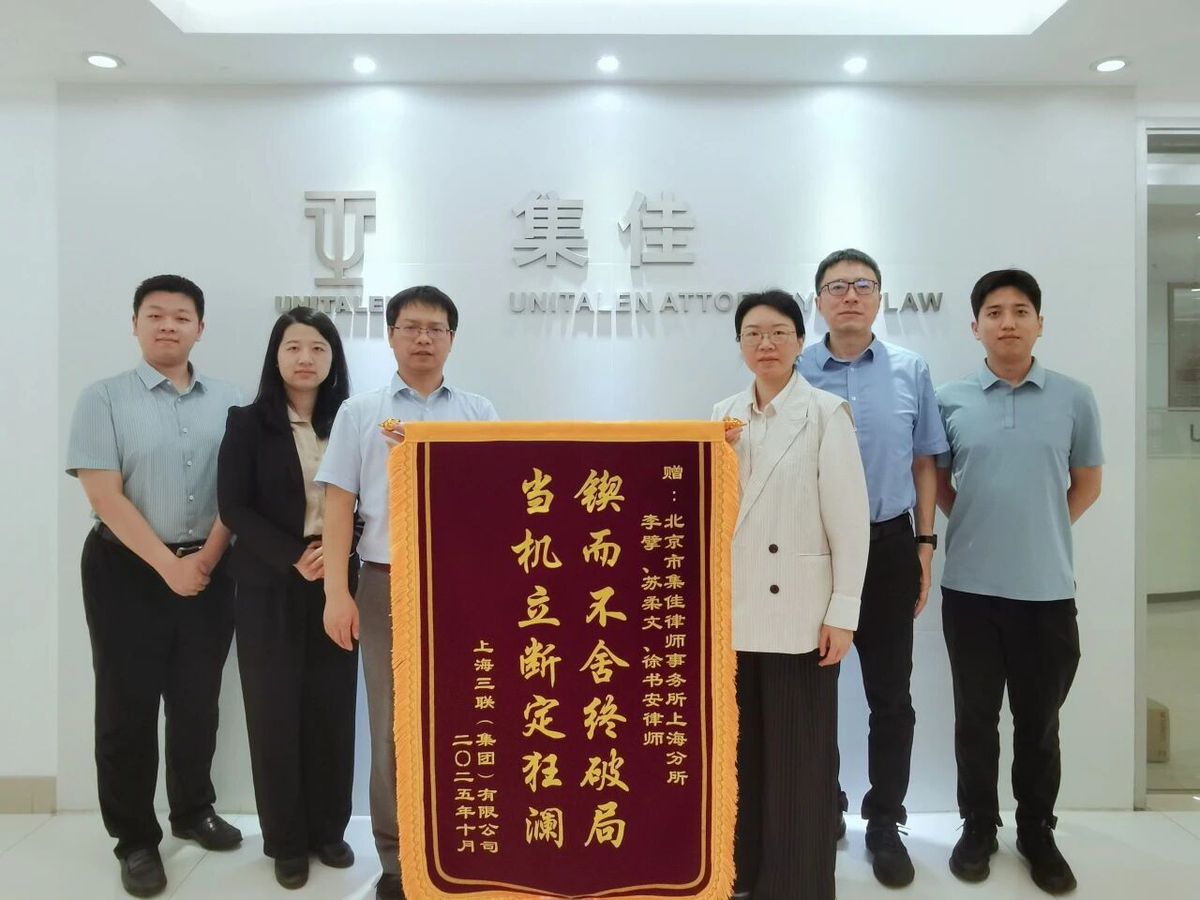 近日,集佳上海分所代理的上海三聯(lián)(集團(tuán))有限公司(以下簡稱“上海三聯(lián)集團(tuán)”)與上海某公司、大豐某公司等侵害商標(biāo)權(quán)及不正當(dāng)競爭糾紛案的執(zhí)行取得重大進(jìn)展,上海三聯(lián)集團(tuán)代表專程蒞臨集佳上海分所,送來表揚錦旗。